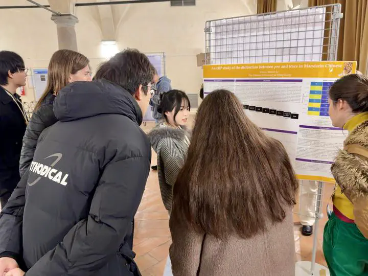 Wency presented the poster ‘An ERP study of the distinction between pro and trace in Mandarin Chinese’ at the Neurolinguistics Workshop at the 34th Conference of the Student Organization of Linguistics in Europe (ConSOLE34), IUSS, Pavia, Italy, January 28.
